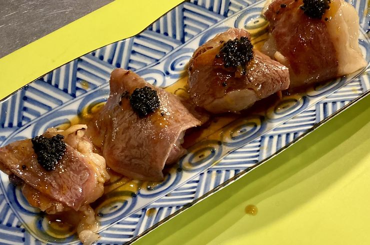2024/05/25『炙りリブロースの肉寿司』です。 大判の国産リブロースをバーナーで炙り、特製玉子ダレをたっぷりからめた後に手毬寿司を包んでご提供致します。 以前はお客様の目の前で炙っていたのですが、... -