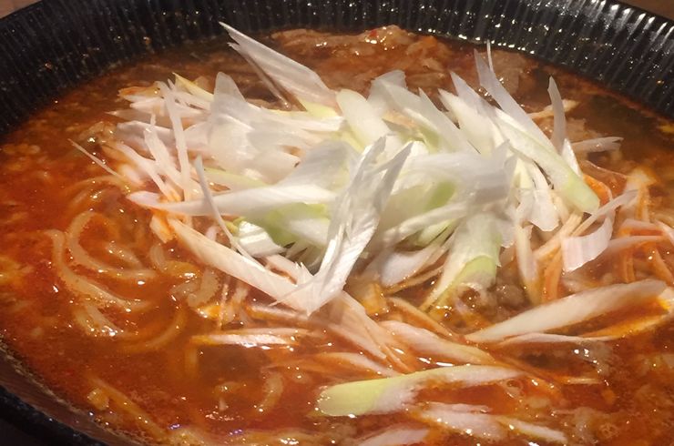 『牛すじピリ辛ラーメン』。相模原市淵野辺の焼肉店、ホルモンビストロ瞬