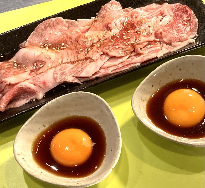 弊店は薄くスライスした黒毛和牛のブリスケをサッと焼いて玉子だれで食べていただく「焼きすき」スタイルです。