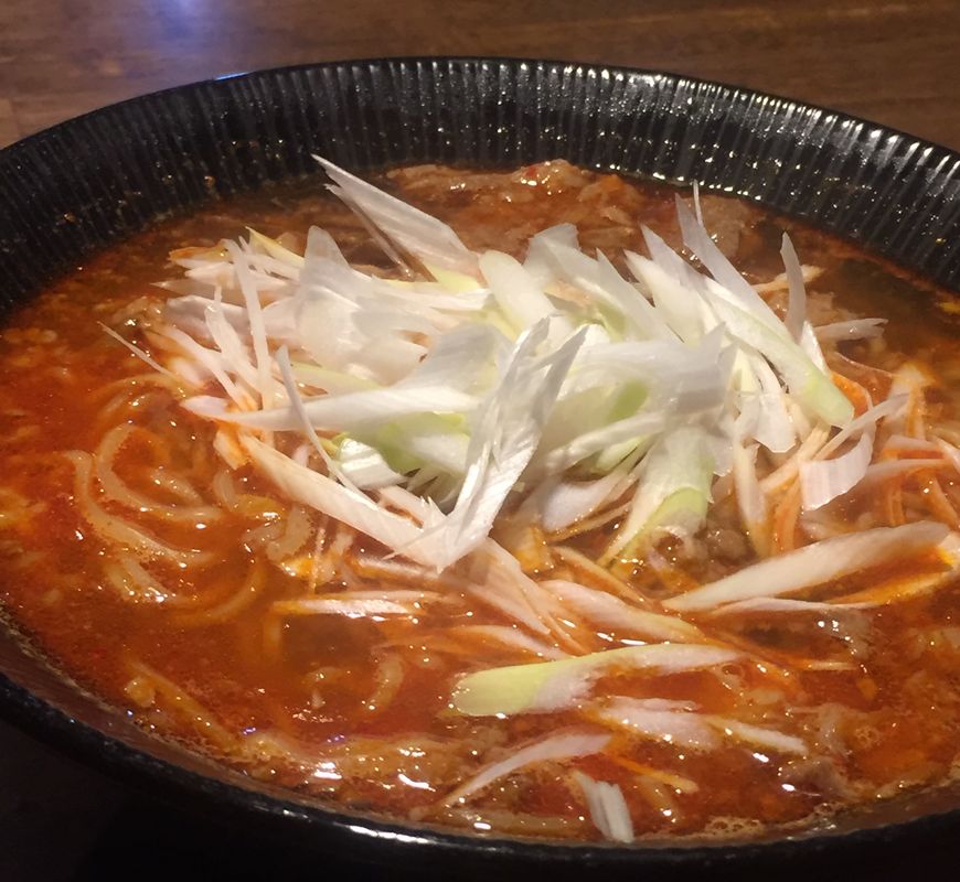 『牛すじピリ辛ラーメン』。相模原市淵野辺の焼肉店、ホルモンビストロ瞬