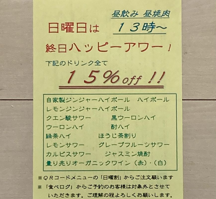 2025.11.30『日曜終日ハッピーアワー』神奈川県相模原市淵野辺の焼肉店、ホルモンビストロ瞬のおすすめ