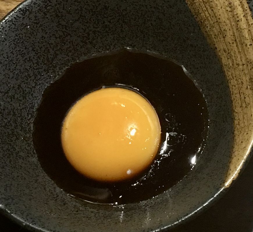 弊店自家製の醤油だれ と 卵黄 を合わせた『玉子だれ』です。