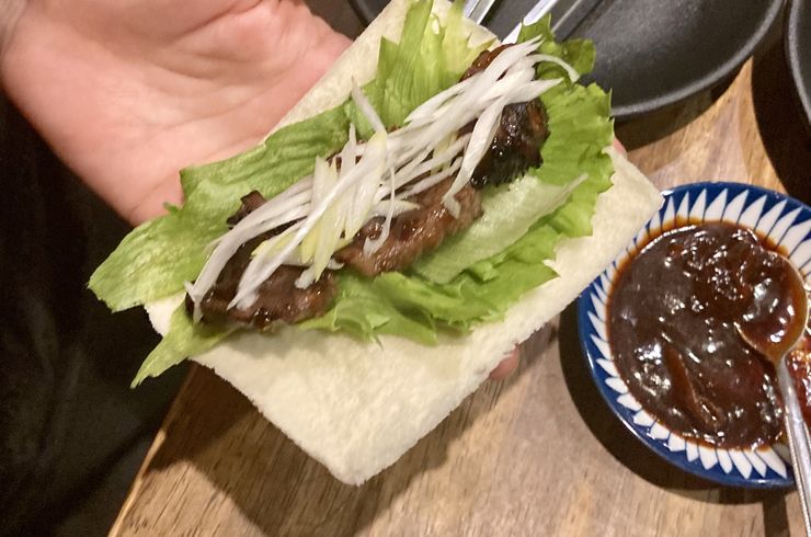 2025/10/22画像は『北京ダックスタイル』。 北京ダック風の特性だれ+レタス+白髪ネギ+パンのセットです。(お肉は付いていません) 別注いただいたお好みのお肉を焼いたらこちらのセットに包んでお食べください... -